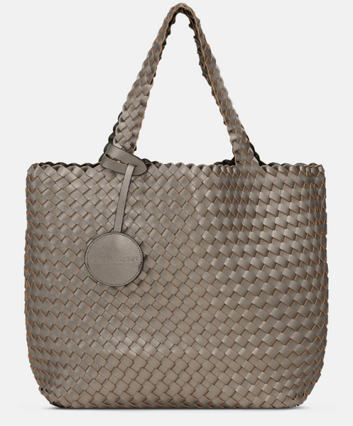 This reversible vegan tote is as cool as it is practical. We love how the woven design adds a richness of texture and style. The solid coloring goes with everything in your wardrobe.