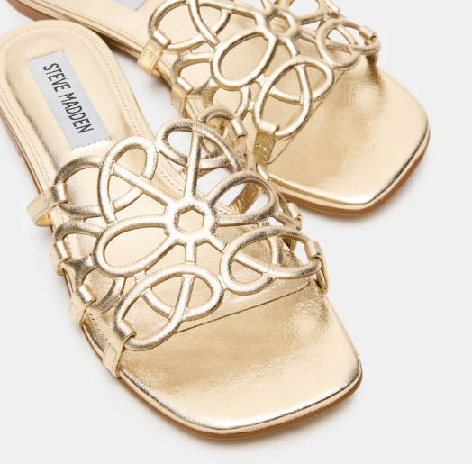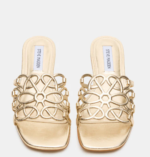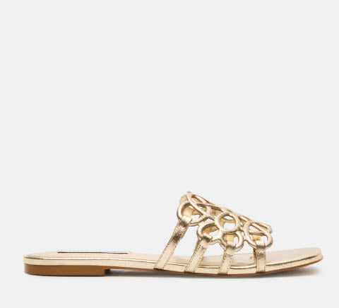 Lotus flower slide sandal. Leather upper & synthetic rubber sole.