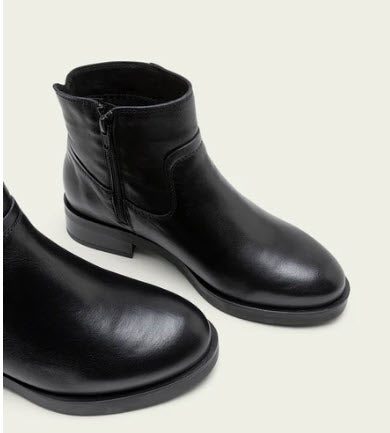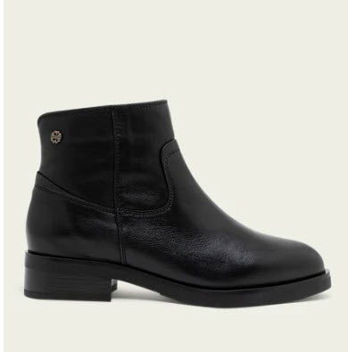 Leather ankle bootie with an inside zip. Microfiber insole and lining with a velvet comfort finish. 1" heel. Made in Spain. Whole European size only. If you are a half size, larger whole size recommended.