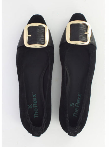 Full coverage ballet with belted toe. Supple suede upper & full rubber sole for added comfort.