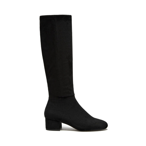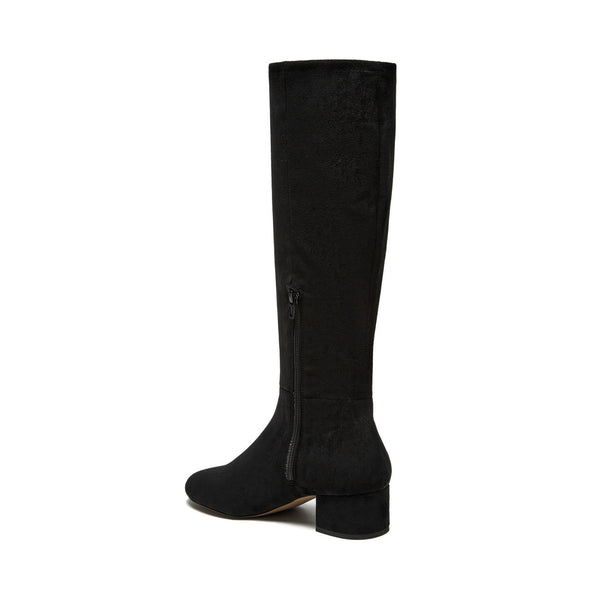 Textile & suede tall boot on mid stack heel. Inside zip for easy wear.